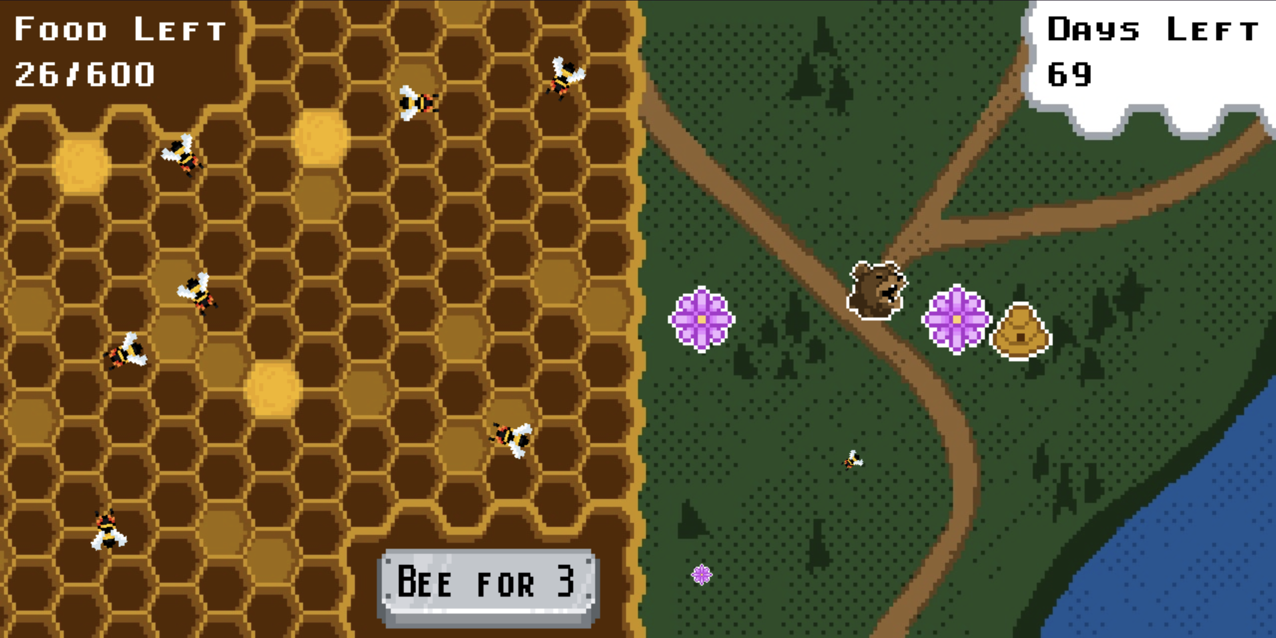 Play as a hive of bees, telling your workers where to forage for pollen and directing them to fend off bears that want to steal your honey! Your success in a rhythm minigame determines your workers' ability to complete their tasks. Collect enough food by the end of summer to last your hive through the winter!