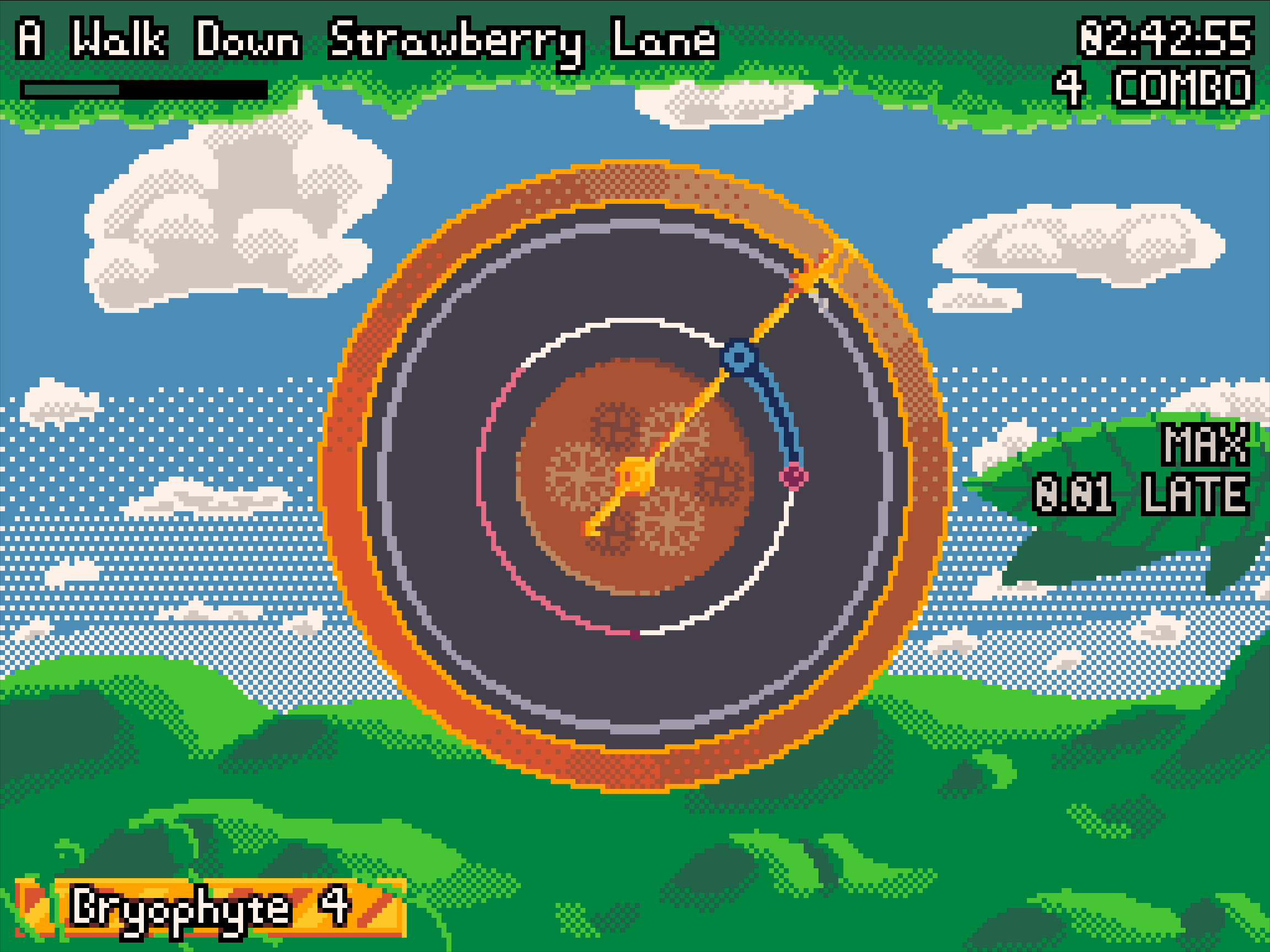 This unique take on a rhythm game uses a clock hand as an input line! In addition to the standard tap and hold notes, special note types can change the position, direction, or number of clock hands. Although there are very few full charts, the game comes with a built-in chart editor. This project was very fun and quite challenging, as rhythm games demand a bit more precision and consistency than many other genres. This project also helped me gradually improve my pixel art.